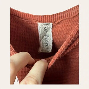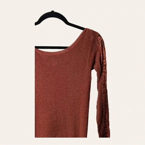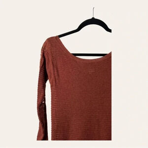 0014. FREE PEOPLE LONG LACE SLEEVES TOP RUST IN COLOR SIZE LARGE RUNS SMALL