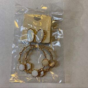 0014 | GEOMETRIC STONE POST DROP HOOP EARRING