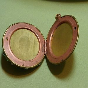 Victorian Brass Ox Nebula Helix Locket Adorned with Multicolor Preciosa Czech Crystals, Capturing the Nebula Helix. The locket is weighted well, with two places inside to put favorite photos of loved ones. The back is suitable for engraving.
