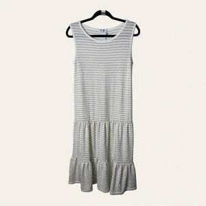 0030W. Bb DAKOTA MAXI TIERED DRESS WIDE STRAPS CREAM AND WHITE IN STRIPES XSMALL