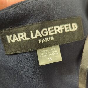 00327 Karl Lagerfeld Bell Sleeves Dress Navy Blue 14 preppy Business casual