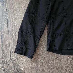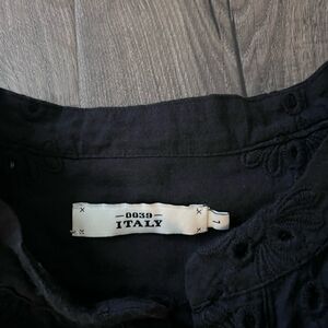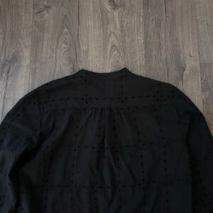 Special features: shortened, concealed button placket, rounded hem, side slits, longer back