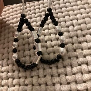 0044- Chicos Stylish loop earrings with black and silver beads. Ideal for versatile wear.