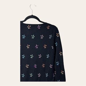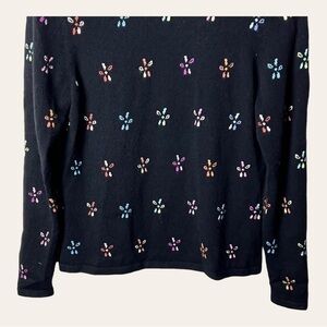 0046. TALBOTS LONG SLEEVE TOP 100% CASHMERE‎ BLACK WITH MULTI COLOR FLOWERS