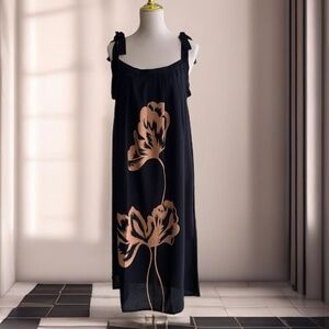 0052/ Black Tie on Shoulder Dress With Flower Pattern