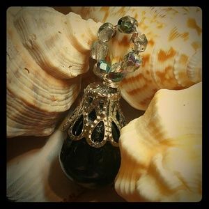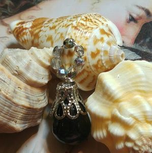 Beautiful Artisan Handcrafted Genuine Black Spinel Pear Briolette Gemstone Pendant. 17.68 cts, mounted in a basket weave bead cap, with a sparkling Czech Crystal Preciosa Beaded Bail.