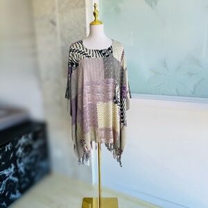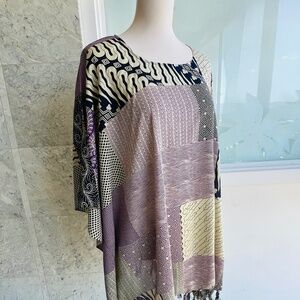 0059/ purple Multicolor Poncho with fringed, Batik Poncho with fringed