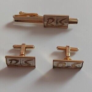 #0078 Vintage Hickok USA RS Name Initials Cufflinks and Tie Clip Set
