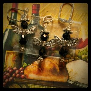Artisan Handcrafted Beautifully Faceted Swarovski Crystal Ebony Petite Angels Jewelry Set.
