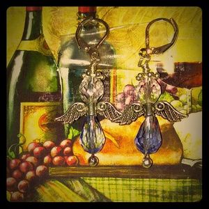 Cornflower Blue Swarovski Faceted Crystal Briolette Medium Angel Earrings.