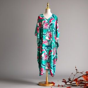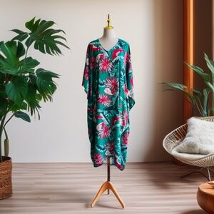 0095/ Tropical Leaves Pattern Kaftan, Hawaiian Mumu