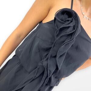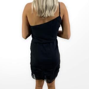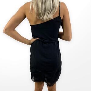 00s ANDREE Vintage Y2K Black Ruffle One Shoulder Lined Mini Dress