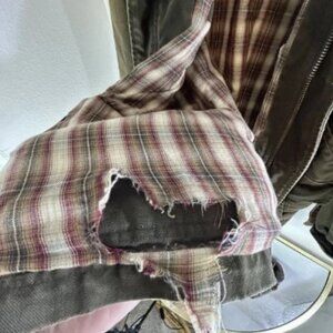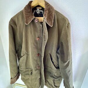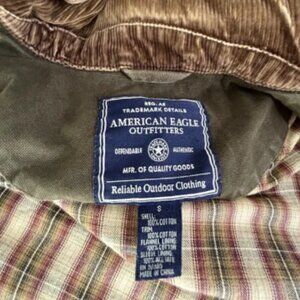 Tears in the interior see pictures. The product is a vintage 00s American Eagle flannel lined faded barn coat in size small. Made from cotton with a flannel lining, this coat is a stylish and cozy option for men. The green color and anorak style give it a unique and casual look that is perfect for everyday wear. Perfect for those who enjoy a mix of nostalgia and classic style in their clothing choices.