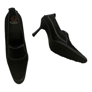 00’s Black Kitten Heels White Stitch 7 Sporty