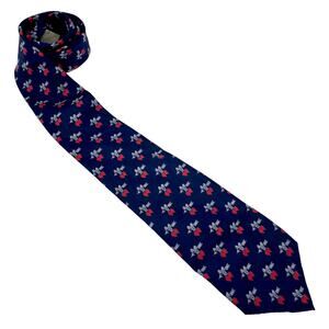 00s CHRISTIAN DIOR Vintage Blue Red Silk Wide Arrow Hearts Tie