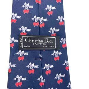Vintage, silk, tie with hearts and arrow patterned by Christian Dior.