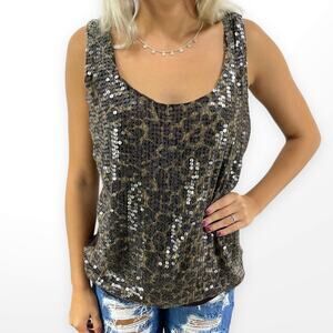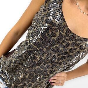 00s MATTY M Vintage Brown Sequin Cheetah Print Scoop Neck Tank