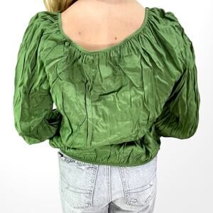 00s MAX STUDIO Vintage Green Embroidered Scoop Neck Blouse