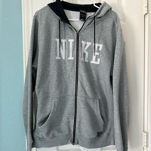 00s Nike Spellout Vintage Y2K Oversized Retro Zip Hoodie size large Gray