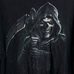 00s Y2K Tennessee River Grim Reaper Baggy Skater Black Tee
