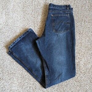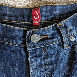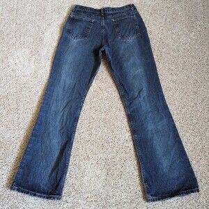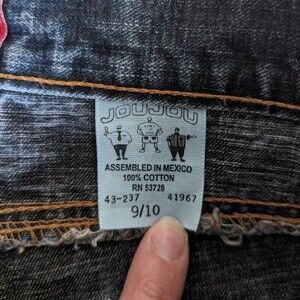 00s Y2K Vtg joujou 100% Cotton Denim Dark Wash Distressed Flared Jeans