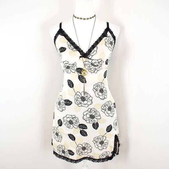 00s Y2K White Black Cream Floral Lace Flowy Babydoll Cami Slip Top Size Large