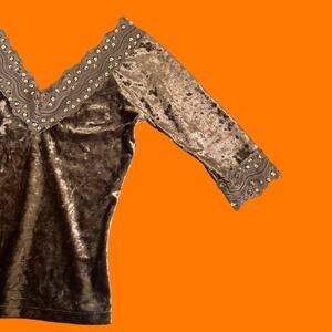 00's vintage crushed velvet gold sequins lace boho y2k top blouse XS SMALL