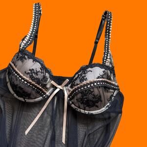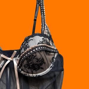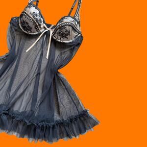 00's vintage mesh lace frilly bustier y2k lingerie baby doll MEDIUM delicates
