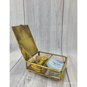2000's Via Vermont Artistry in Glass Present by Sandra Kuck Antique Gold Tone Music Trinket Box # 664561 Two Girls at Piano