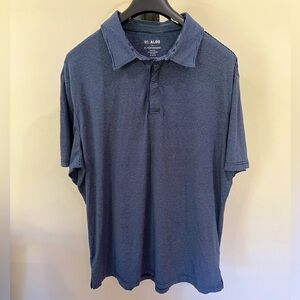 0.1 Algo men’s blue and gray striped short sleeve polo golf shirt. Excellent condition. Blue and gray striped. Short sleeve. Buttons at neckline with collar. Super soft and stretchy. Quick dry, moisture wicking, anti-odor, UV SPF protection 40. Perfect for every day wear or can also be worn as an athletic golf shirt. Men’s size XXL. Measured approximately 26 inches flat across chest from armpit to armpit, 30 inches in length, with shoulder measuring 20.5 inches from Shoulder seem to shoulder seam in back.