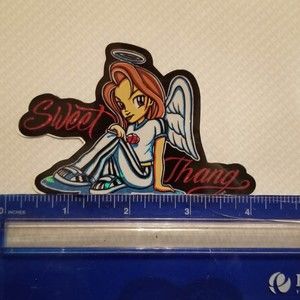 '01 Aztlan Graphics vending machine prism stickers "Sweet Thang" in very good condition. Has S&S2 @2 of 15 printed on back. Size is 4" x 2 3/4". Has been stored in a binder last couple decades. There is a tape on the back side on the paper where it was mounted in the binder. Doesn't effect the sticker.