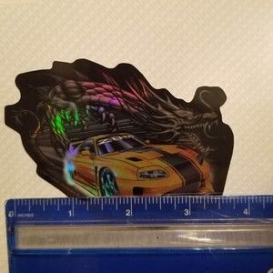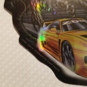 2001 DYKOM ZUM prism vending mach sticker in very good condition. Yellow car with a dragon. Size is 4" x 2 3/4". Has been stored in a binder last couple decades.