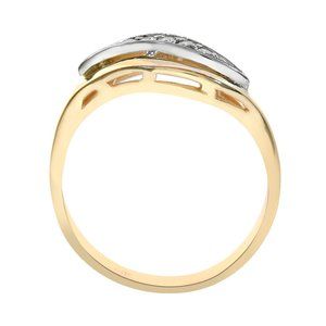 Simply stunning, this classic ring showcases an elegant round cut diamonds in a prong setting weighing 0.10 carat (total carat weight), color/clarity H/SI1. Set in 14K yellow gold, ring weighs 2.9 grams, width 7.2 and size 7.25. Polished to a brilliant shine, it's a lovely look for your hand. For re-sizing information, please contact us.