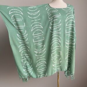 0102/ Soft Green Moon Chase Poncho With Fringes, Short Kimono