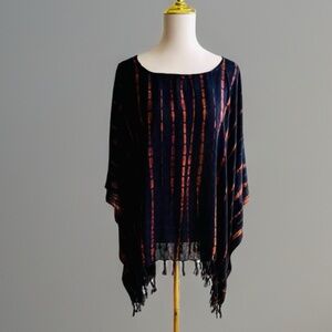 0106/ Black Brown Poncho, Swim Cover up, Loose Tunic
