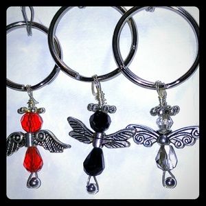 Set of Three (3) Handcrafted Artisan Swarovski Crystal Key Ring Holders in Red, Black, and Clear-White | Size: 1.00"