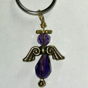 Artisan Handcrafted Deep Purple Faceted Swarovski Angel Key Ring, with Golden Halo and Wings.