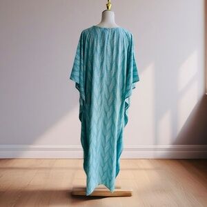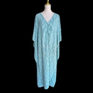 0109/ Pale Teal Leaf Pattern Kaftan, Long Kaftan