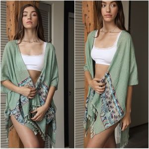 011 Boho Embroidered Tassel Open Front Kimono Cover up