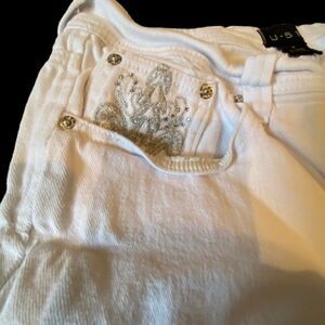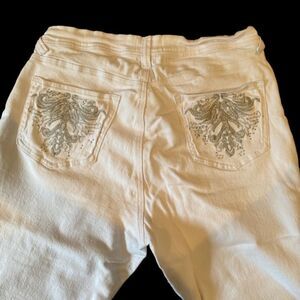 0112 U-51 White Emroidered Denim Capri Jeans Size 14