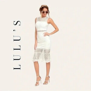 0113W. LULU’S MIDI EYELET DRESS WHITE IN COLOR SIZE‎ XSMALL LINED SLEEVELESS