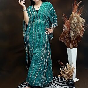 0118/ Hand Tie-Dye Rayon Caftan: Bohemian Maxi Dress, Resort Wear