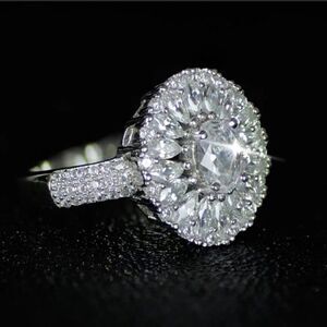 💎0123💎 BEAUTIFUL STERLING SILVER OVAL DIAMOND RING