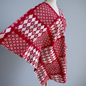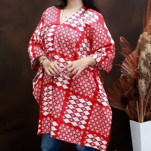 0127/ Red & White Batik Pattern Short Kaftan, Cotton Dress