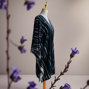 0128 / Black and White Short Kaftan, Rayon Caftan