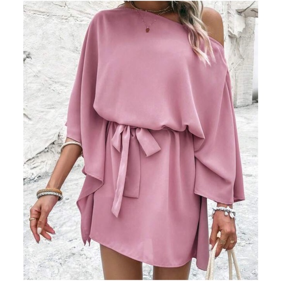 013 One Shoulder Kimono Sleeve Belted oversized Dress