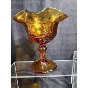 0131 Fenton Empress Pattern Golden Amber Compote