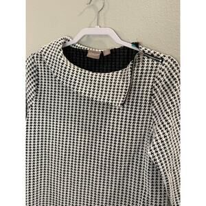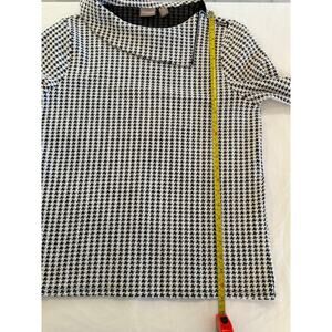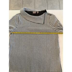014 Chico's Houndstooth Shoulder Zipper 3/4 Sleeve Collar Pullover Sz 1 (M) Top