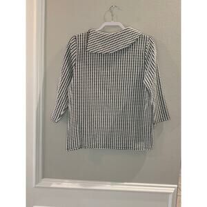 Chico's Houndstooth Shoulder Zipper 3/4 Sleeve Collar Pullover Sz 1 (M) Top, great condition, smoke free, measurements in pics, ships fast
