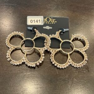 #0141 NWT NOIR JEWELRY EARRING GOLD AND IVORY BEADS DAISY